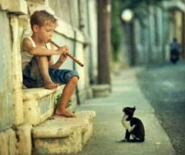واخذ الطفل يرنو بسحر الموسيقي وهو يتمايل كا الاغصان ويترنح هنا وهناك وتميل معه كل الأشجار حتي القط الصغير